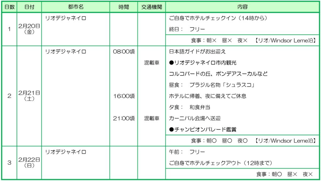 空港/ホテル間の送迎手配のほか、リオデジャネイロ前後の観光アレンジ等のご希望・ご要望はコンタクトのメッセージ欄にご入力ください。