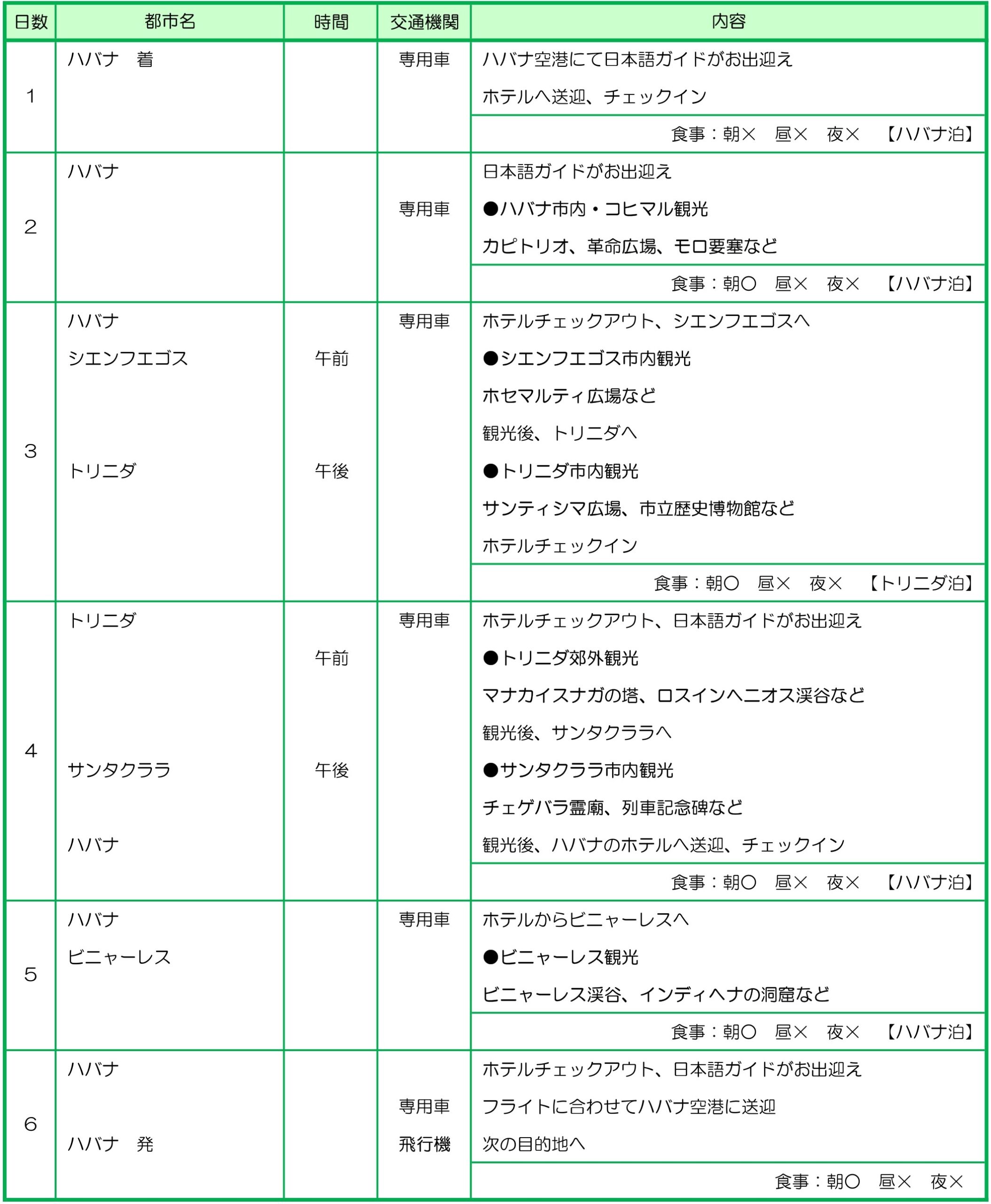 ホテル5泊分(ハバナ4泊、トリニダ1泊)