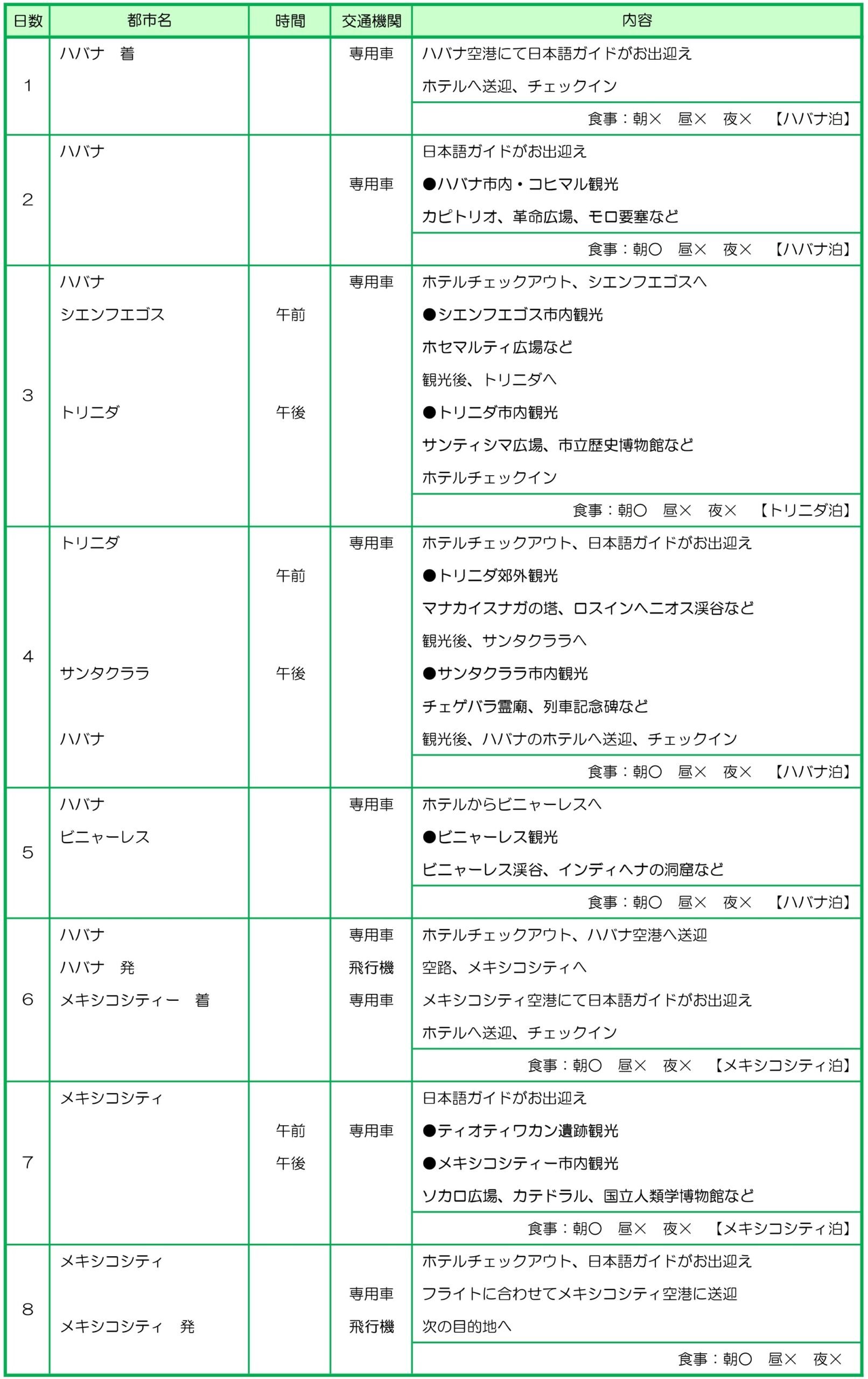 ホテル7泊分(ハバナ4泊、トリニダ1泊、メキシコシティ2泊)